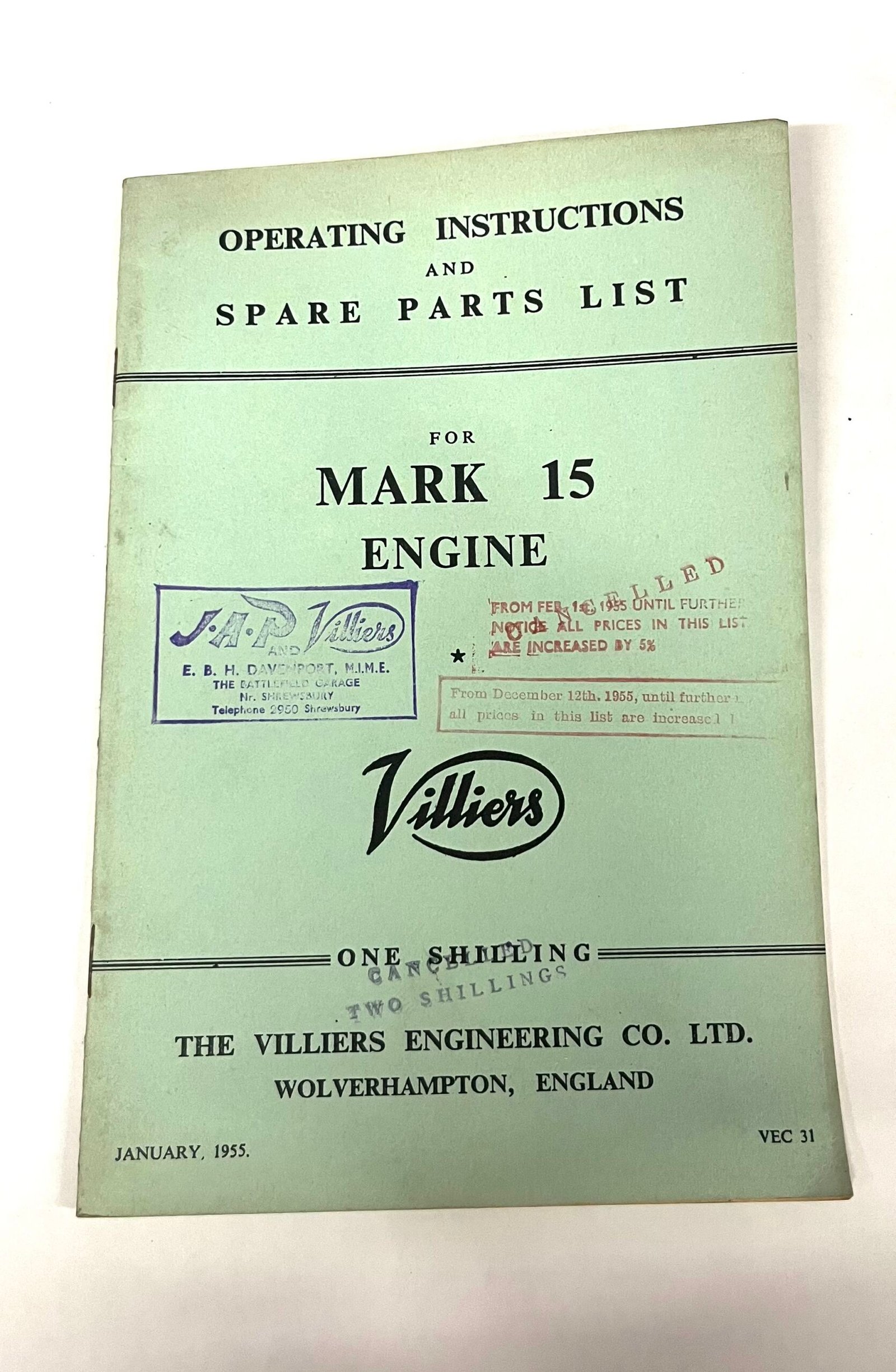 Villiers parts book / operating instructions for the MK 15 motor. Useful timing info, fault finding etc. Also lists all part numbers too.