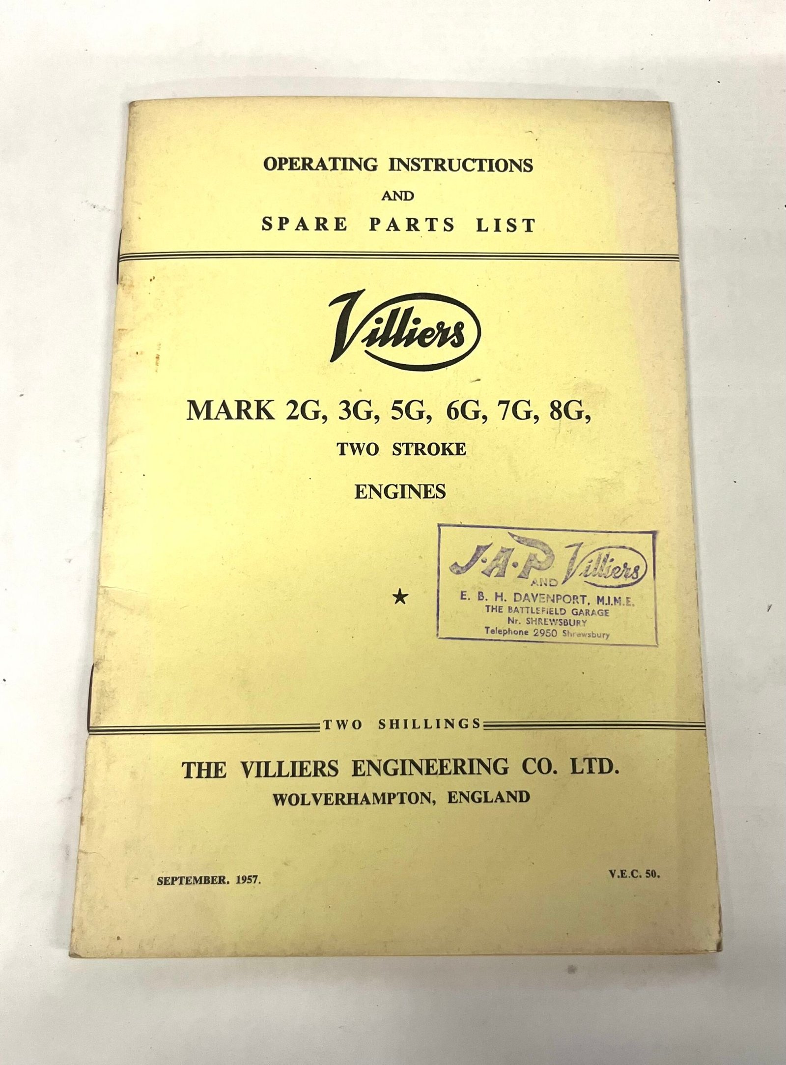 Villiers parts book / operating instructions for the MK 6G / 8G motors. Useful timing / tuning info, fault finding etc. Also lists all part numbers too.